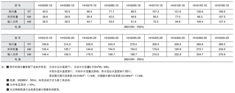 ̖HHS050.1B~HHS420.2B 45.5~399.5RT 28.8~252.8kW 䄩HCFC-22