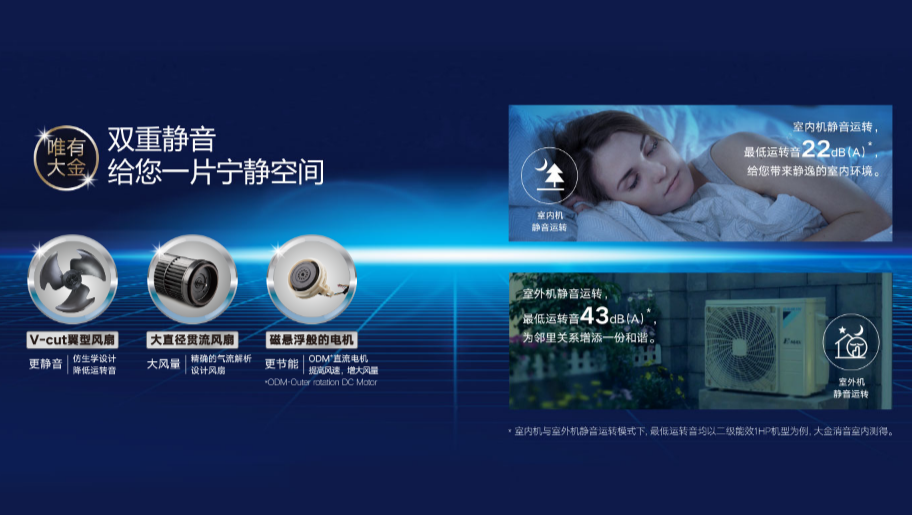 通過(guò)Outer rotation DC Motor直流電機(jī),源源不斷地為風(fēng)扇提供高速運(yùn)轉(zhuǎn)的強(qiáng)勁動(dòng)力,最大程度避免了機(jī)械摩擦,使室內(nèi)機(jī)風(fēng)扇可以像磁懸浮列車(chē)一樣高速、平穩(wěn)的運(yùn)行。